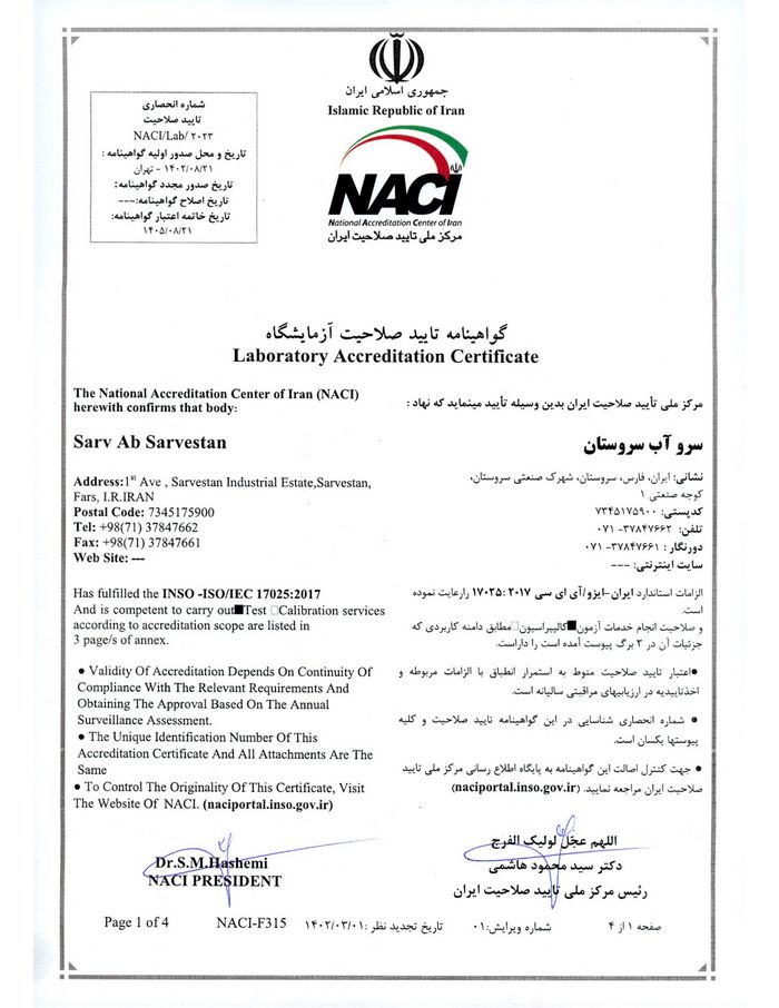 اهداف کلی آزمایشگاه شرکت سرو آب سروستان :